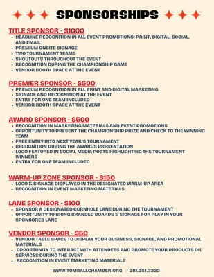 Whether you're playing or cheering from the sidelines, this event is a great way to support the Chamber’s Young Professionals while connecting with the Tomball business community. Don’t miss the fun! 🏆🌽